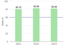 Commentary on result 22/23 ratio 69.00% This is mainly due to large scale projects requiring to be carried over due to protracted negotiations with utility providers, availability of contractors, staff vacancies during the year and price escalations within the construction industry requiring additional funding or a change in project scope.