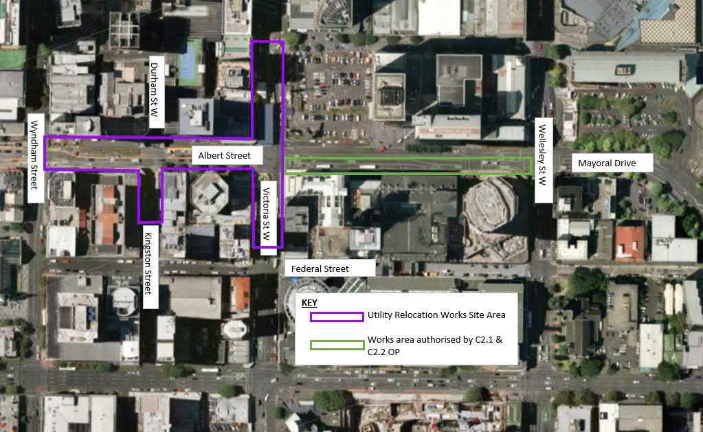 As part of the CRL project, it is proposed to undertake advance utility relocation works prior to the main construction activities around Aotea Station. Approval has been provided for the relocation of utilities between Victoria Street and Wellesley Street along the west side of Albert Street. The