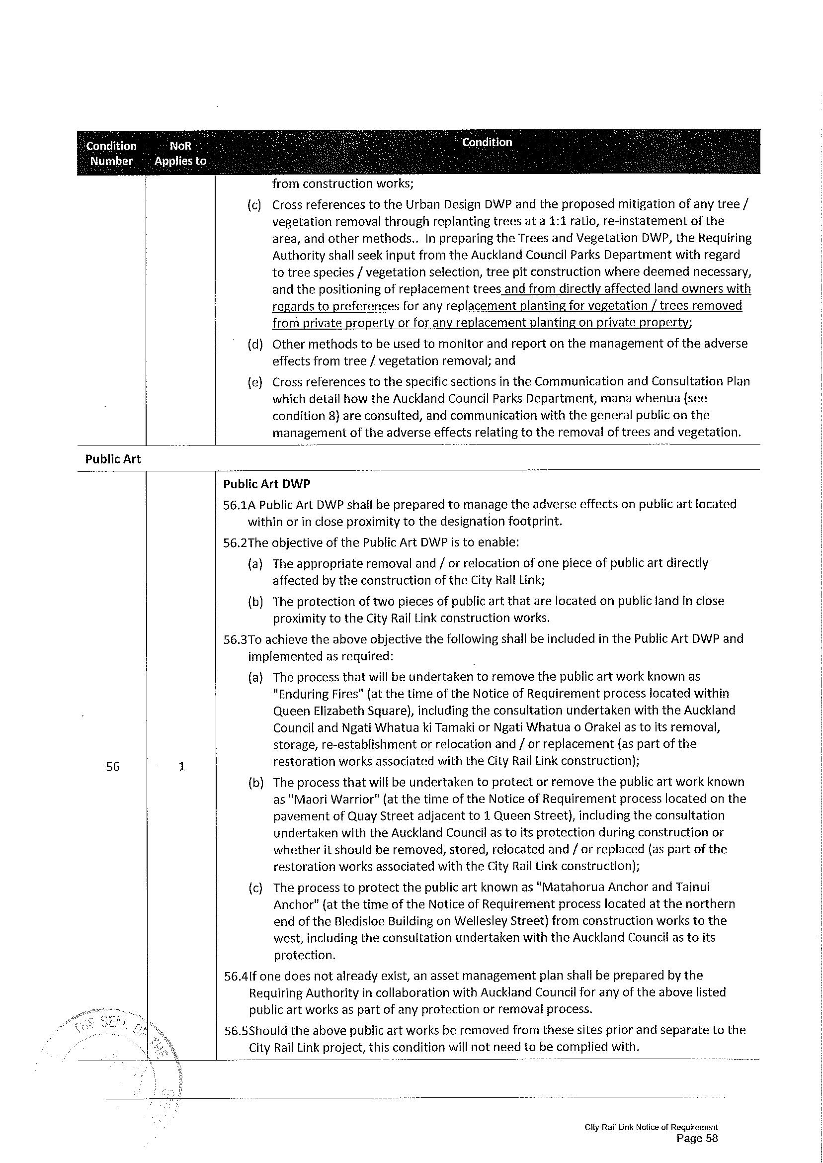 3.1. ATC has been engaged to provide the Trees and Vegetation Delivery Work Plan (DWP) for the vegetation impacted by the Nikau Street Stormwater Main Realignment proposal. The requirements for the Trees and Vegetation DWP are set out in condition 55 of the CRL Designation (Table 1).