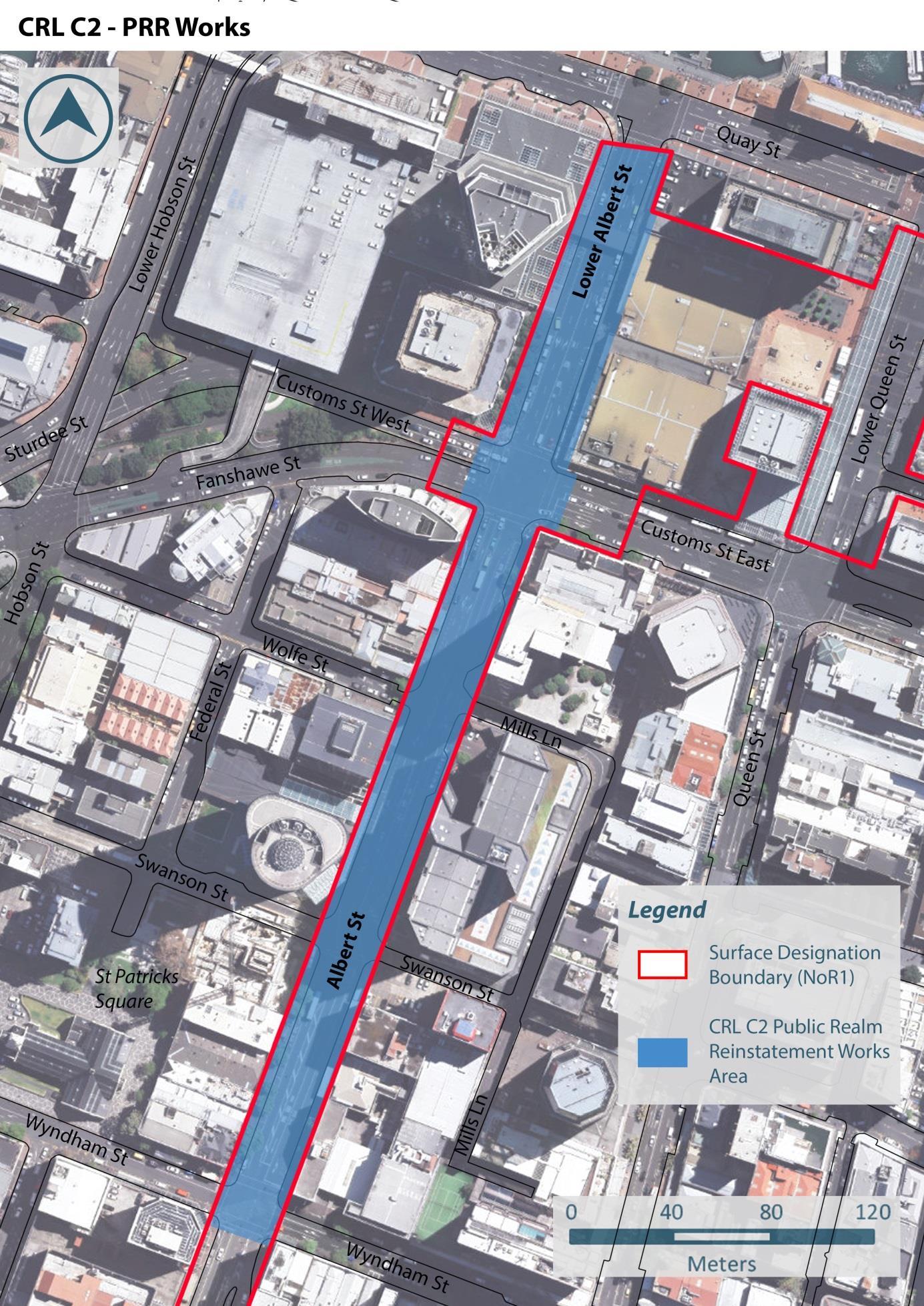 The PRR works will progressively follow the completion of the cut and cover trenched section of the CRL tunnel along Albert Street between Wyndham Street and Customs Street West. As completion of the cut and cover trenched section of the CRL tunnel will occur south to north progressively along Albert Street, so too will the PRR. The exception to this is the Lower Albert Street works between Quay Street and Customs Street West which will occur first to achieve parallel construction timeframes with the Commercial Bay development.