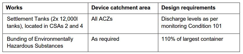 • Table 2.3 / 2.4 – change in wording relating to what happens with surface water collected in the bunded area around the bentonite plant and jet grout plant. Removed reference to sediment control system, for sediment removal, and replaced with water treatment plant, for treatment as they system is designed to deal with treatment for parameters other than just sediment.