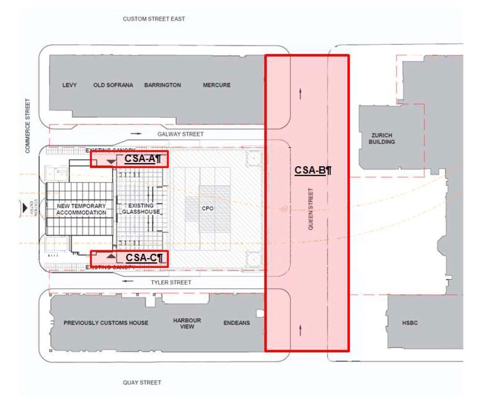 1 Settlement tanks are located in CSA A (adjacent to Galway Street) as opposed to CSA B / CSA 2 (Lower Queen Street) in order to create a more efficient CSA layout