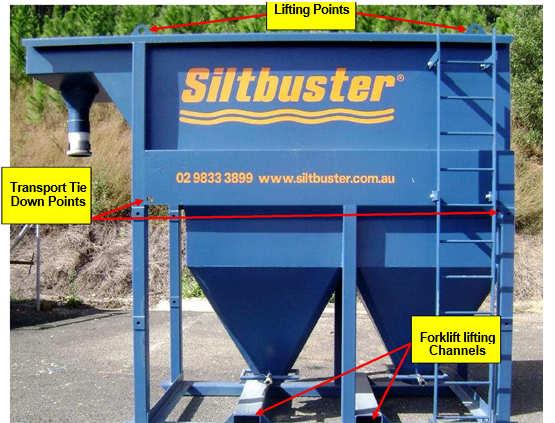 The Siltbuster unit has lifting eyes located at the upper corners of each unit.