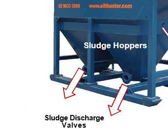 j. If the quality of the discharge water deteriorates (i.e get dirtier) over time, this is an indication that sludge has built up in the hopper, and needs to be removed. If the discharge water becomes extremely dirty very quickly, this would suggest the hoppers are full of sludge, and needs to be removed immediately. (Sludge levels can be checked via the test ports on the Siltbuster cones)