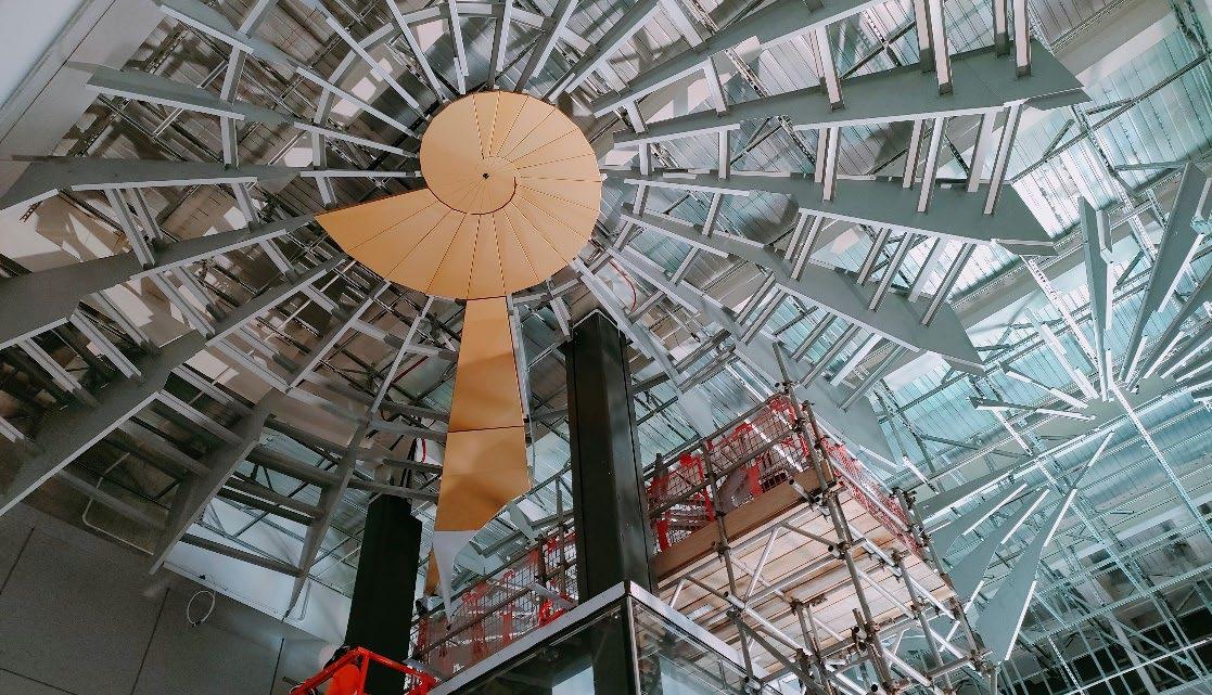 Suspended between 7 and 8.6 metres above the ground, the three shells are made up of 225 unique pieces.