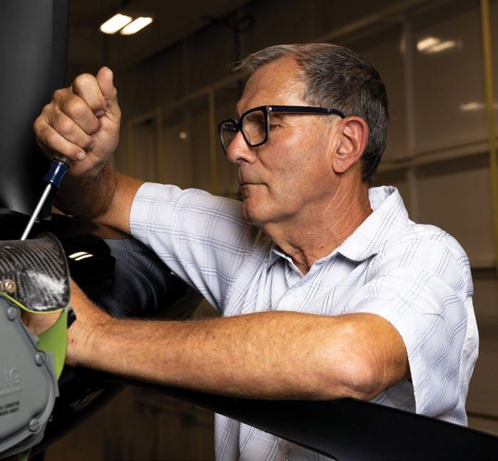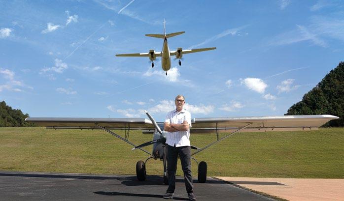red velvet design with an upgraded leather interior. “The smell of that leather is heaven to me as it brings my mind back to my past flights,” he says. “I sometimes go to the hangar just to smell the plane!”