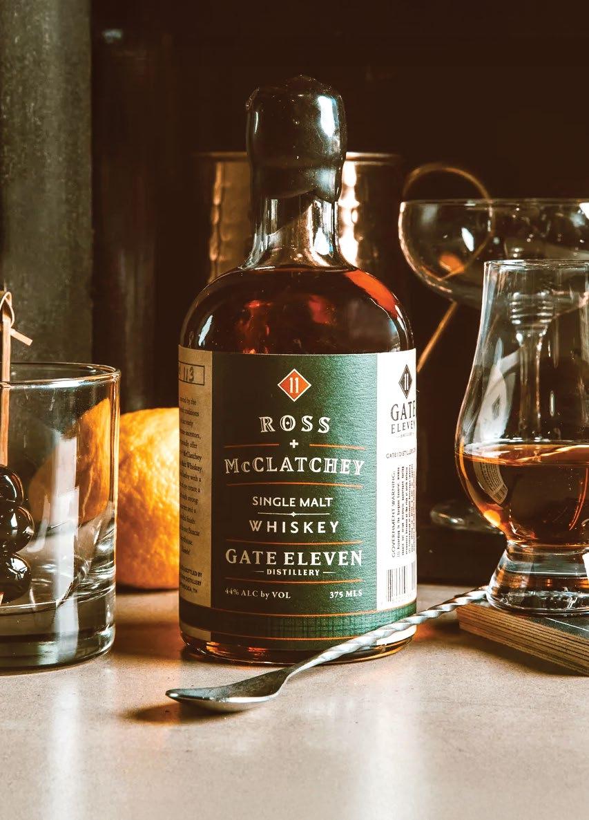 Named after founder Bill Lee’s great-grandfathers, this award-winning single malt whiskey is Gate 11’s take on Irish whiskey, but made in Tennessee with local grains. The mash bill contains 83% malted barley and 17% rye. It’s distilled in a custom-built pot still, then barrel aged for two years, producing tasting notes of bold caramel and woody spices.