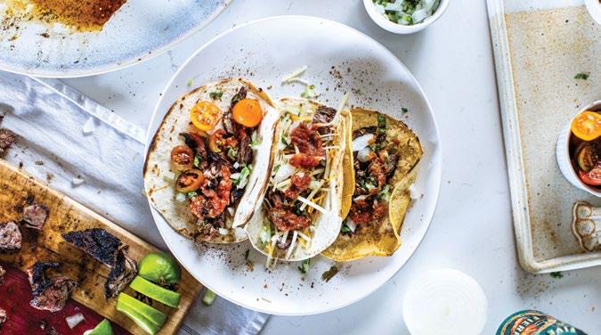 GRILLED SHRIMP TACOS WITH LIME CREMA AND QUESO FRESCO