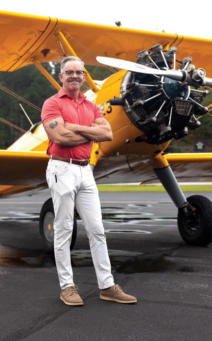 In contrast to the Piper, Jones explains that the Stearman –which he uses for aerobatic maneuvers – was built for military use in the 1930s and 1940s and is characterized by a more robust design. “It’s a classic aircraft that is a legend,” he shares. “Boeing built about 10,000 Stearman to train pilots to fight in World War II. It was not built for comfort or ease. The double wings and open cockpit are breathtaking, and the sound of a radial motor in a plane is unlike any sound I know.”