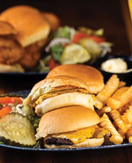 Signature grilled mini burgers, American cheese, lettuce, tomato, and pickle on a potato bun. Served with a classic side.