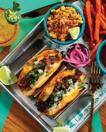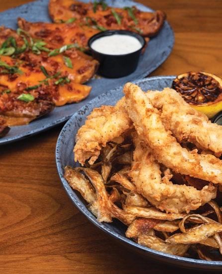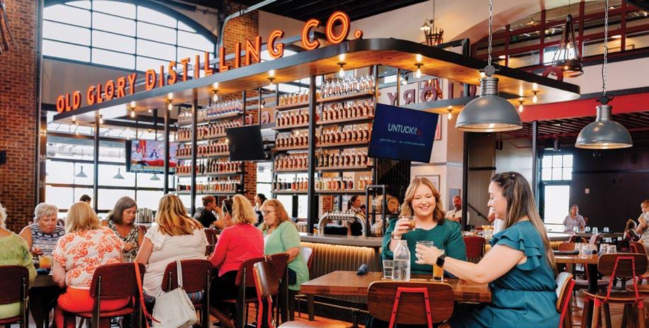 From the outside, one might guess that the building is original, but the flatironshaped restaurant is actually a tribute to the Ooltewah passenger depot. The Ooltewah Depot was built in 1882 along the “Ooltewah Cutoff” line, which connected Chattanooga and Atlanta by way of Ooltewah to Cohutta, GA. The depot closed in 1976 and is no longer standing. “Paying homage to the original depot located directly beside the railroad tracks, we decided to create the Whistlestop with it in mind, keeping as many vintage aspects as possible,” says Cassie Quintard, restaurant general manager.