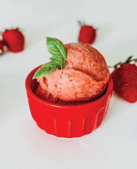 A sweet strawberry sorbet amped up with basil for an herbaceous summer twist.