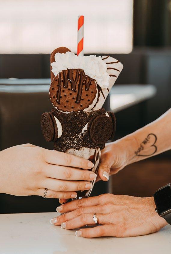 Quintard describes the atmosphere of Ooltewah Whistlestop as “nostalgic, family-oriented, and fun.” The café celebrates local history and offers a place for friends and family to gather, celebrating life milestones or simply enjoying a summer night. She adds, “Each time a train passes, customers – regardless of age – light up and get so excited.” Although the trains no longer pick up passengers at the Ooltewah Depot, guests at the Ooltewah Whistlestop can imagine what it would be like to step back in time –all while enjoying a monumental milkshake. These exceptional treats reflect the heart of the café: good food and good memories are to be shared.