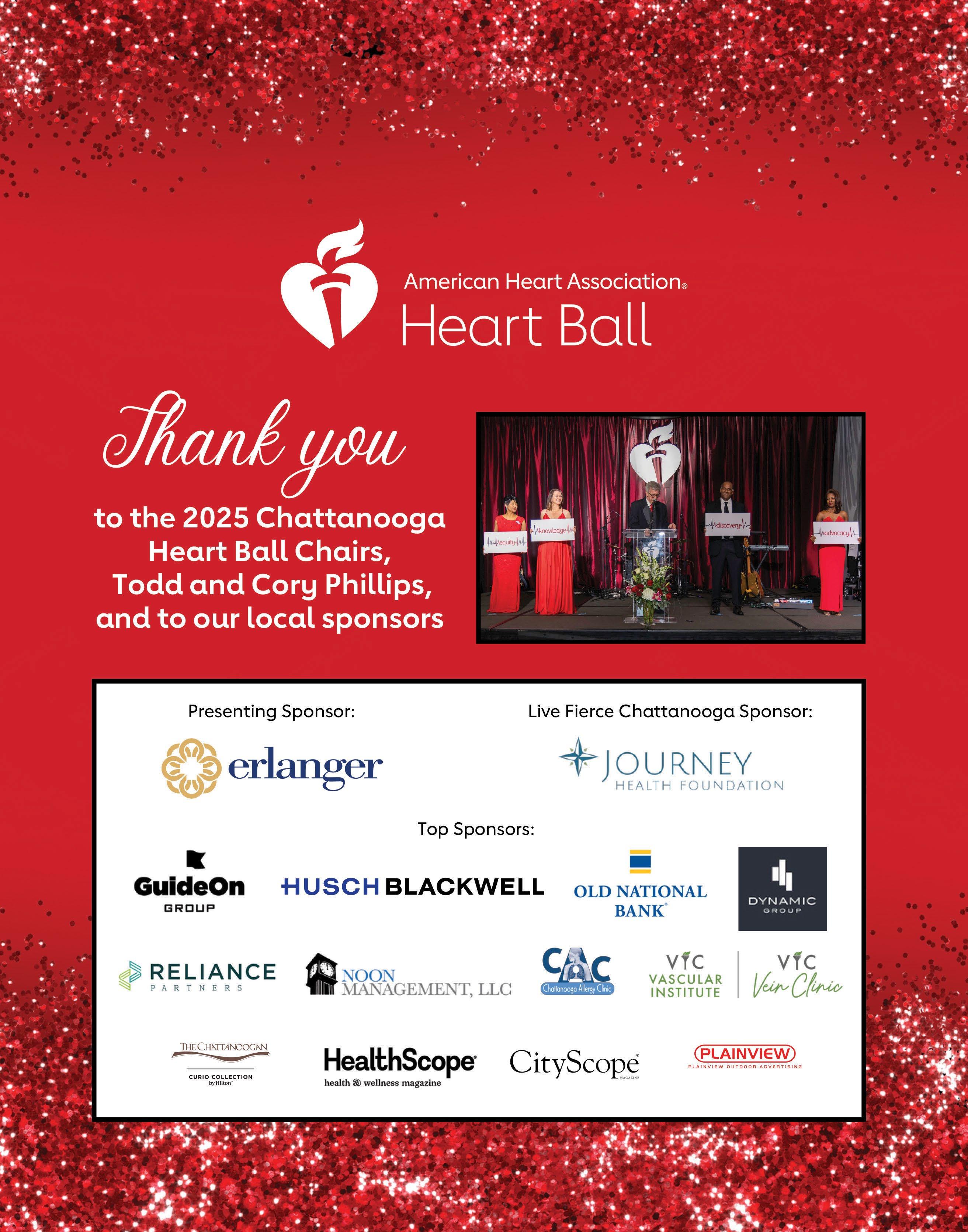 The Go Red for Women event experience focuses on connection and engagement, fostering an atmosphere of interaction and networking at every turn. It will celebrate the power of women banding together and the joy of spending time with fellow champions of the American Heart Association’s mission. The event will include education and experiences that can help improve your health and well-being and that of the women you know and love. heart.org/chattgored
