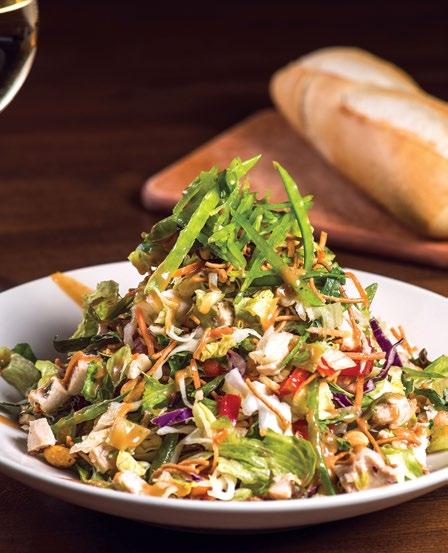 Mixed greens, chicken breast, snow peas, red pepper, dry roasted peanuts, crispy rice noodles, cilantro-peanut vinaigrette, and Thai peanut drizzle.