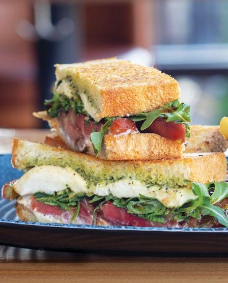 Fresh mozzarella, heirloom tomato, arugula, balsamic glaze, Parmesan-garlic mayo, and pistachio pesto on buttered sourdough. Served with a classic side.