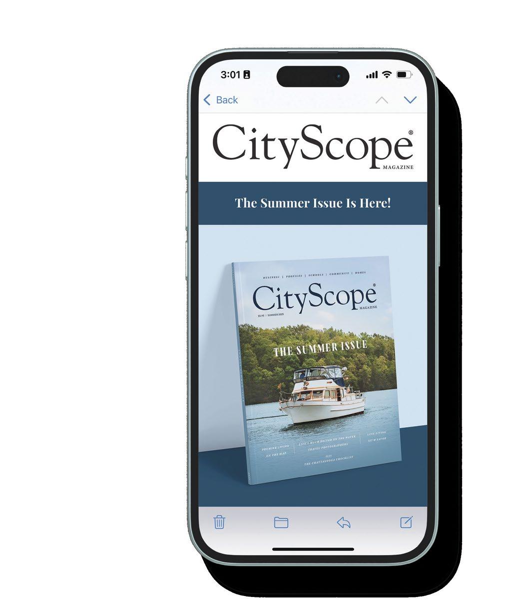To receive advertising information, change your mailing address, or share your views on editorial: Call 423.266.3440 or visit cityscopemag.com or healthscopemag.com and click “Contact.”