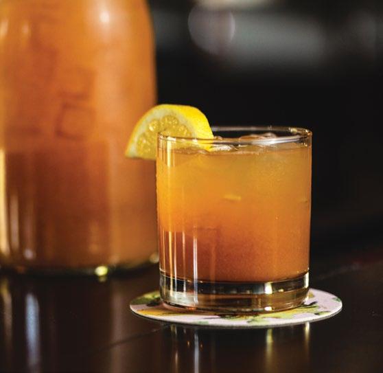 (left to right) High Tea Bourbon-spiked tea with a blend of freshly squeezed juices, clove, and mint.