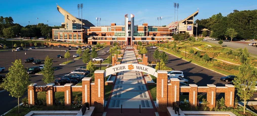 and grits — in a building that’s older than the first automobile. Newer to the street is Evolve Kitchen and Table, specializing in craft cocktails and locally sourced dishes. Elsewhere in town, longstanding fine-dining favorites include Pixie & Bill’s (established in 1971) and Calhoun Corners For cheap eats, head to Loose Change, and feed your inner coed at Tiger Town Tavern, Study Hall, and TD’s of Clemson. A must-go on game days, Esso Club sports bar shows off a bevy of memorabilia and boasts the best fried pickles around. Moe Joe Coffee is a hot spot for local and regional acoustic acts on weekends.