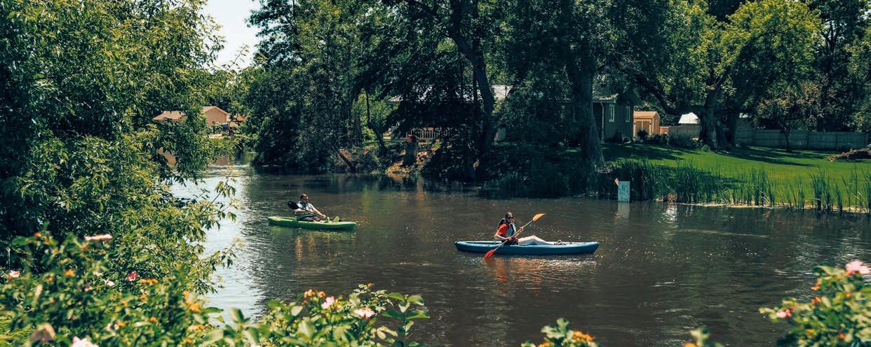 Jamestown has a kayak water trail with launch docks from Nickeus Park to Klaus Park.