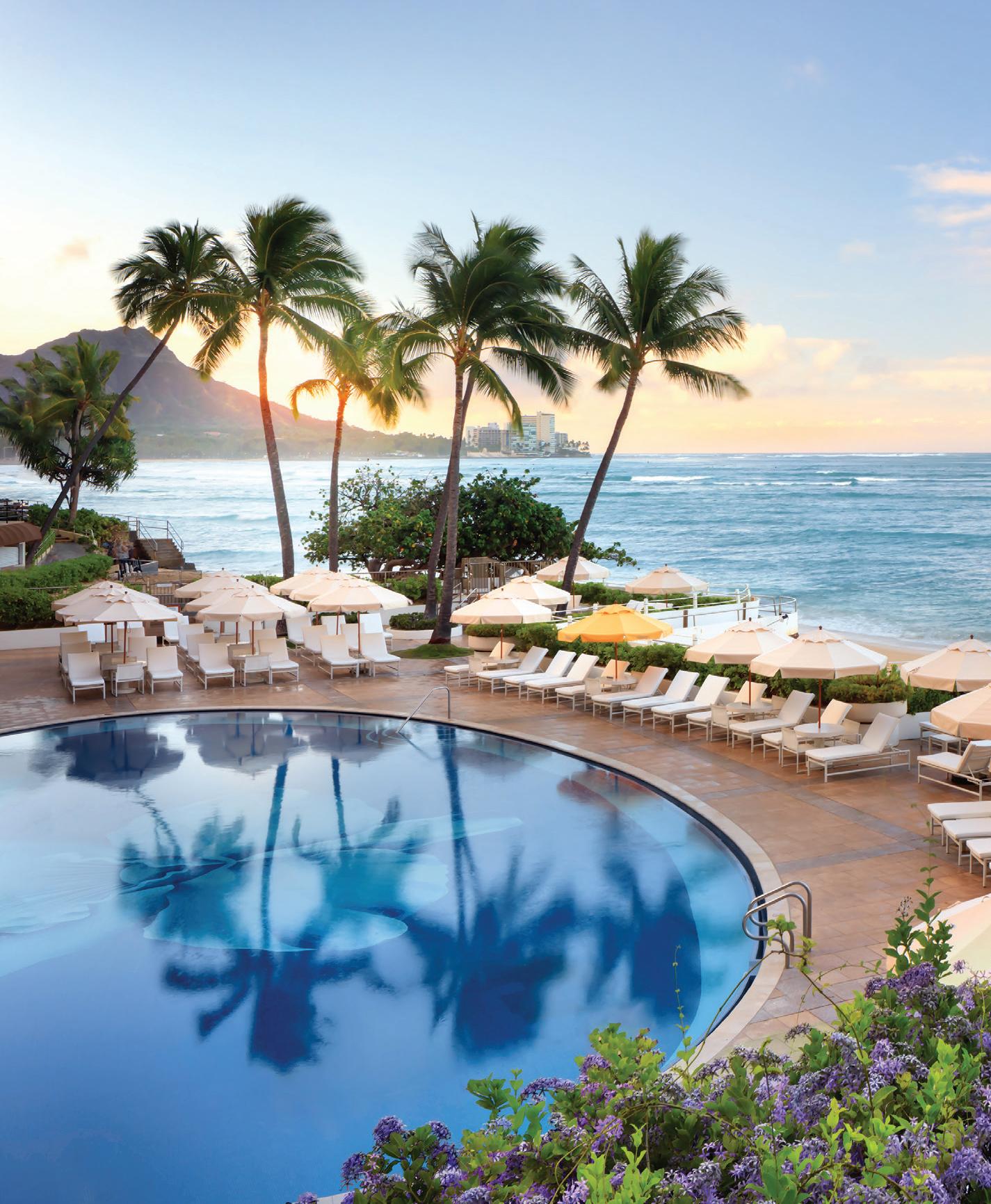 hotel’s signature “seven shades of white,” which helps showcase Hawaii’s natural, vibrant beauty outside the sliding glass door. Touches of luxury are strewn throughout each room, from the soaking tubs and plush robes to the clever design of the closets (which open from both the bathroom and guest room), and the original, Hawaiianinspired scent of the bath products.