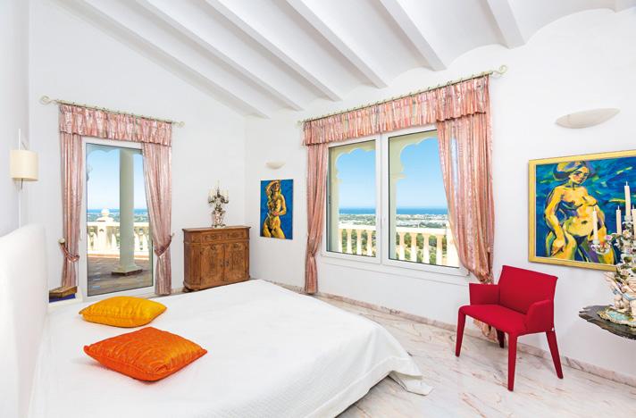 Impressive villa with 8 bedrooms, built on a 3.000m² plot, in a location that could perfectly be a famous viewpoint. Fairytale feeling and 1001 nights atmosphere on 790m² living area with staff apartment and guest unit. Three heat pumps, several garages, sauna, solar panels and open sea views. € 3.500.000,-.
