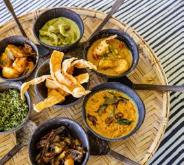 Our moreish adventure with Miss Mi began with a serve of chilli crab and prawn dumplings, wild kingfish kinilaw followed by roasted bone marrow with marinated rump and the succulent Borneo boar sausage.
