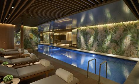 A 25-metre pool heated to a comfortable 26 degrees features glass louvres that open up the space to the street offering a nice mix between indoor and outdoor. There’s also a hot tub and sauna.