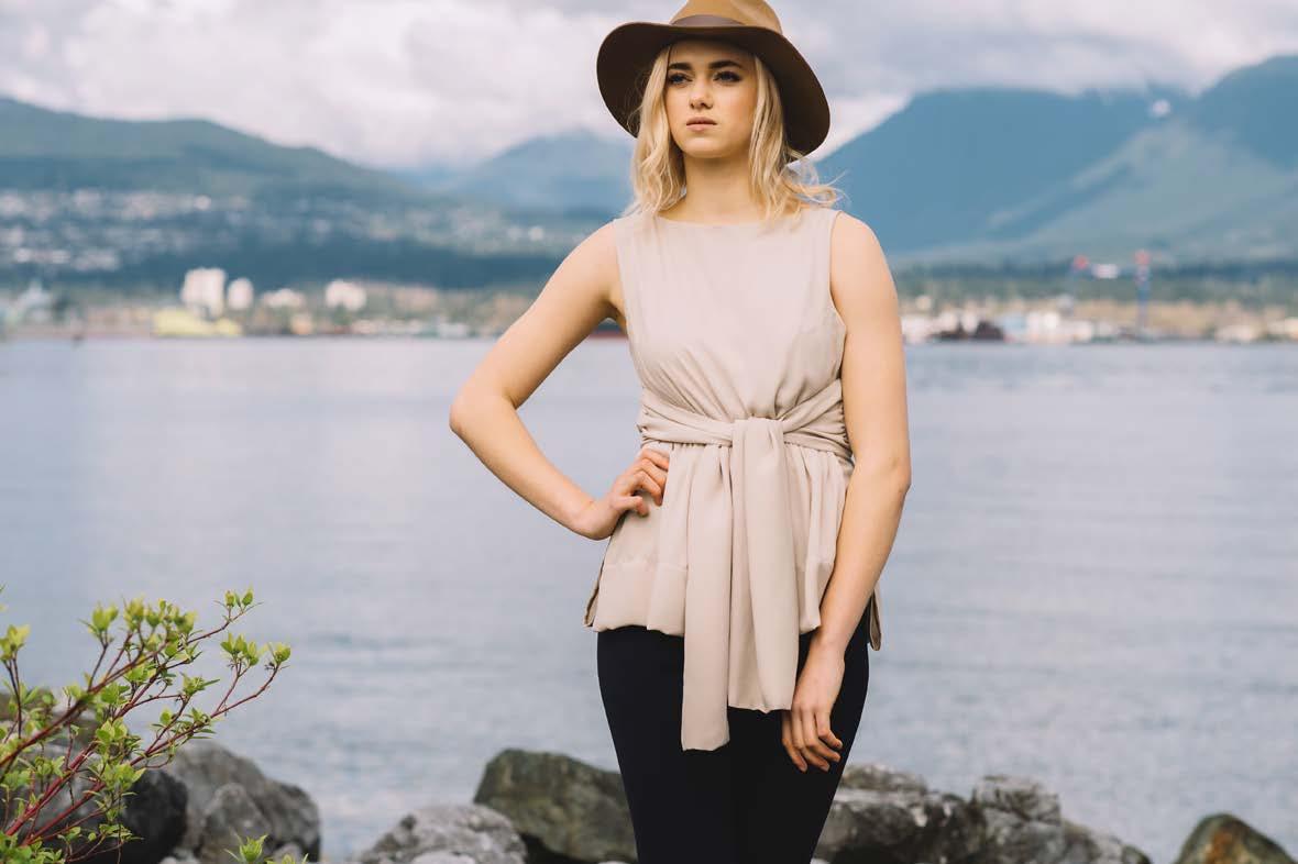 Style Name: Balance Blouse Description: A sleeveless blouse with a gathered waist and ties instead of side seams for fit and adjustability.