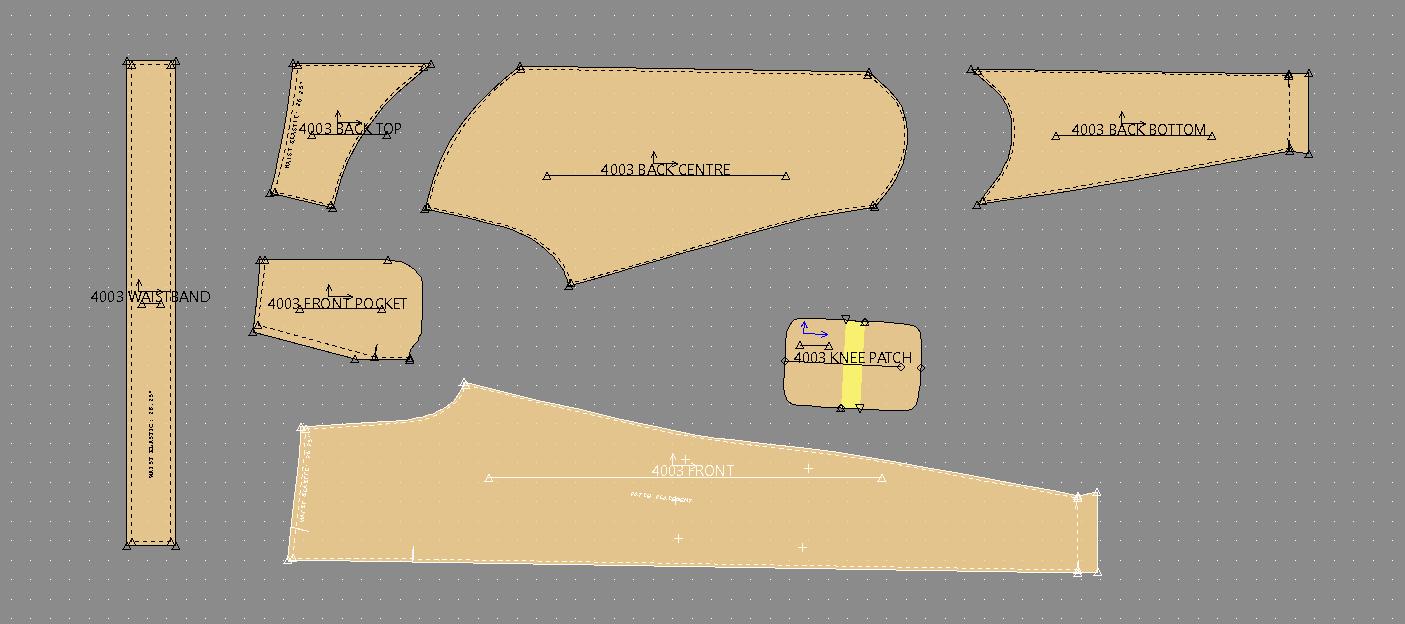 Rotated view: Inseam pocket is sewn on the inside to the self and the external patch pocket is placed on top.