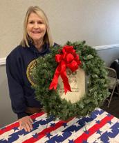 Holly is seen by the wreath for Wreaths Across America. The Quilt was a raffle prize. The POW table representns our veterans that can’t be with us. Our veterans organizations came together and served a great breakfast.
