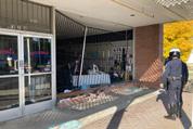 Elderly lady backed into the storefront window at a great speed! No one was injured in the store. Driver was examined by paramedics. No visible signs of any injuries. Happened around 9am. as coffee group heard the shattering of glass to the North of them.