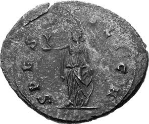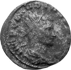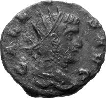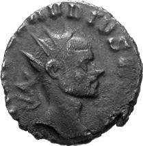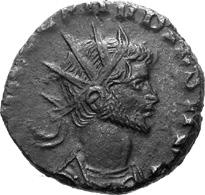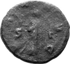 G15 Postumus AD 260-269 Antoninianus irregular (BI; 18-19mm; 2.53g; 4h) [I]MP C POTVMVS P F [AVG] Radiate and draped bust of Postumus to right. Rev. PA[X – AV]G Pax standing to left, holding branch in right hand and sceptre in left. Cf. C. 215; cf. RIC IV, III p. 363, 318; cf. Schulzki AGK, N26a.