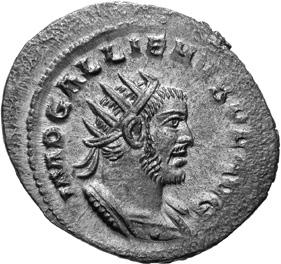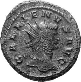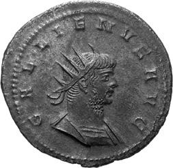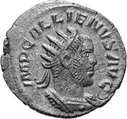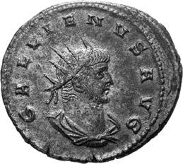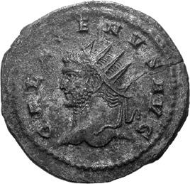 A40 Gallienus AD 253-268. Antoninianus (BI; 20-21mm; 3.36g; 5h) Samosata 3rd issue, 260. IMP C P LIC GALLIENVS P F AVG Radiate, draped and cuirassed bust of Gallienus to right, seen from the back. Rev. IOVI CONSERVA-TORI Emperor standing to right, holding long sceptre in right hand, receiving globe from Jupiter standing left, holding long sceptre in left; above, wreath. C. 378; MIR 36, 1697b (29 known); RIC V, I p. 103, 440.