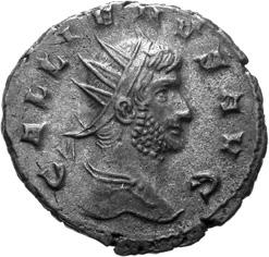 A17 Gallienus AD 253-268. Antoninianus (BI; 16-20mm; 3.35g; 6h) Siscia, 3rd issue, 266. GALL[IENV]S AVG Radiate bust of Gallienus to right. Rev. [P]A-X AVG Pax standing left, holding olive branch in right hand and sceptre left. C. 728; MIR 36, 1441i (80 known); RIC V, I p. 182, 575.