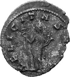 A13 Gallienus AD 253-268. Antoninianus (BI; 17-18mm; 2.14g; 5h) Siscia, 3rd issue, 266. [G]ALLIENVS AV[G] Radiate bust of Gallienus to right (smaller head as previous coin). Rev. FEL[ICI AV]G Felicitas standing to left, holding caduceus in right hand and cornucopiae in left. C. 181; MIR 36, 1428i (30 known); RIC V, I p. 181, 565.