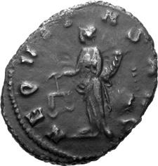 A09 Gallienus AD 253-268. Antoninianus (BI; 18-20mm; 2.93g; 12h) Siscia, 3rd issue, 266. GALLI[ENVS AV]G Radiate bust of Gallienus to right (bigger head than following coin). Rev. AEQ[VITA]S AVG Aequitas standing left, holding scale in right hand and cornucopiae in left. C. 24; MIR 36, 1423i (54 known); RIC V, I p. 180, 553var.