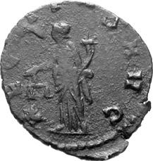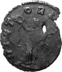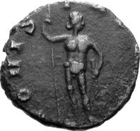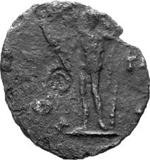 G05 Postumus AD 260-269 Antoninianus irregular BI; 17-18mm; 1.75g; 2h) IMP C POSTVMVS P F AVG Radiate and cuirassed bust of Postumus to right. Rev. [HER]C P-ACI FERO Hercules standing to left, holding branch, club and lion’s skin Cf. C. 101; cf. RIC IV, II p. 342, 67; cf. Schulzki AGK, N13.