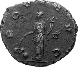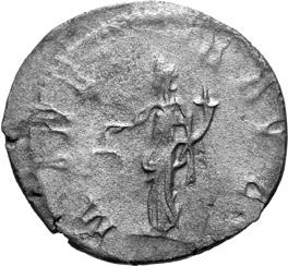 A25 Gallienus AD 253-268. Antoninianus (BI; 19-22mm; 3.14g; 6h) Siscia, 6th issue, 267268. [GA]LLIENVS AVG Radiate head of Gallienus to right (smaller head than previous coin). Rev. P-ROVI AVG Providentia standing to left, holding baton in right hand and cornucopiae in left; at foot, globe; in the field to left, II C. 854; MIR 36, 1476b (115 known); RIC V, I p. 182, 580.