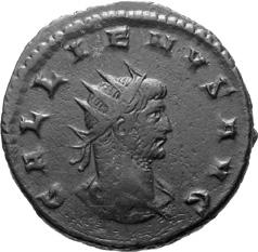 A17 Gallienus AD 253-268. Antoninianus (BI; 16-20mm; 3.35g; 6h) Siscia, 3rd issue, 266. GALL[IENV]S AVG Radiate bust of Gallienus to right. Rev. [P]A-X AVG Pax standing left, holding olive branch in right hand and sceptre left. C. 728; MIR 36, 1441i (80 known); RIC V, I p. 182, 575.