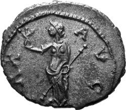 A28 Gallienus AD 253-268. Antoninianus (BI; 19-20mm; 2.75g; 1h) Siscia, 9th issue, 267268. GALLIENVS AVG Radiate head of Gallienus to right. Rev. FORTV[NA RED] Fortuna standing to left, holding rudder in right hand and cornucopiae to left; in the field to right, S. C. 265; MIR 36, 1499b (26 known); RIC V, I p. 181, 572.