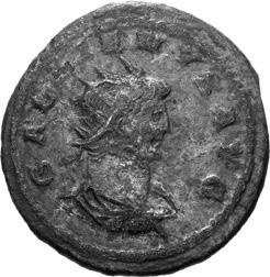 A17 Gallienus AD 253-268. Antoninianus (BI; 16-20mm; 3.35g; 6h) Siscia, 3rd issue, 266. GALL[IENV]S AVG Radiate bust of Gallienus to right. Rev. [P]A-X AVG Pax standing left, holding olive branch in right hand and sceptre left. C. 728; MIR 36, 1441i (80 known); RIC V, I p. 182, 575.