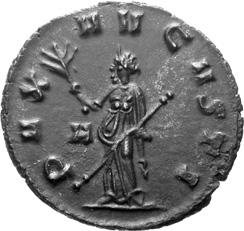 A15 Gallienus AD 253-268. Antoninianus (BI; 20-23mm; 4.10g; 5h) Siscia, 3rd issue, 266. GALLIENVS AVG Radiate head of Gallienus to right. Rev. PA-X AVG Pax standing to left, holding branch in right hand and sceptre in left. C. 727; MIR 36, 1441i (80 known); RIC V, I p. 182, 575.