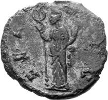 G26 Postumus AD 260-269 Antoninianus irregular (BI; 16-18mm; 2.10g; 6h) IM[ ]VS AVG Radiate, draped and cuirassed bust of Postumus to right. Rev. V[BERT]AS AVC Fertilitas standing left, holding purse (?) and cornucopiae. Cf. C. 365; mt 6, 2009 p. 125 and 124 pl. 22 (this coin illustrated); cf. RIC IV, II p. 363, 330; cf. Schulzki AGK N42a