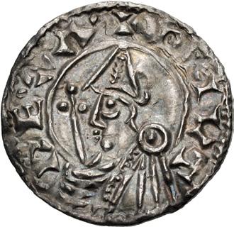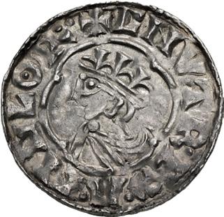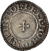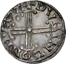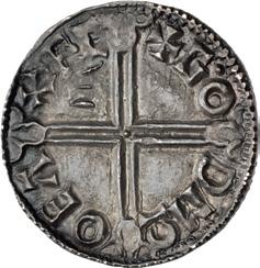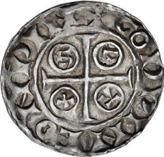 [...], cross pattée crosslet; pellet-in-crescents in quarters. Burns 2; cf. SCBI 35 (Ashmolean & Hunterian), 34-9 (for type); SCBC 5024. Richly toned. VF. A good portrait of William paired with a clearly struck mint and moneyer. Rare. With an old ticket in the hand of Peter Seaby. ($1000)