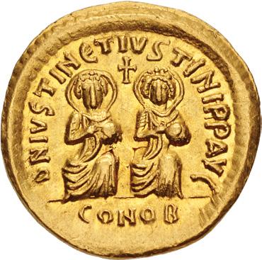 Extremely Rare Joint Reign Solidus of Justin II & Tiberius II Constantine