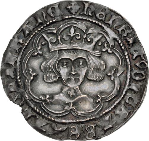 In 1483, Edward IV prohibited the operations of the Drogheda mint. Accordingly, the Suns and Roses/Rose on cross groats and pennies must date to the brief reign of Edward V. The mint apparently took the king’s death as an opportunity to resume production.