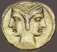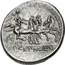 This coinage, previously attributed to Capua in Campania, has been conclusively reattributed to the Carthaginians in Bruttium under Hannibal (see M.H. Crawford, “Provenances, Attributions, and Chronology of Some Early Italian Coinages,” CH IX (2002), p. 274, and HN Italy). While it is likely that this issue was minted in Bruttium by the Carthaginians, there is a possibility that these coins were struck in Carthage and transported to South Italy for Hannibal’s use (see G.K. Jenkins, Studi per Laura Breglia, Parte I, Generalia-Numismatica Greca. Bollettino di Numismatica, Supplemento al No. 4. [Rome, 1987], pp. 223-4).