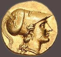 Demonstrating the usual flair shown by the die engravers in the service of Pyrrhos during his military expedition in Italy and Sicily, the small gold issues of 280/279 depicting Nike and Leukippos (HN Italy 1629-1631) are of a refinement second to none. The traditional city founder is rendered in exquisite detail with the added novelty of his helmet being decorated with Skylla hurling a stone, the very embodiment of aggressive violence before the enemy in time of war.