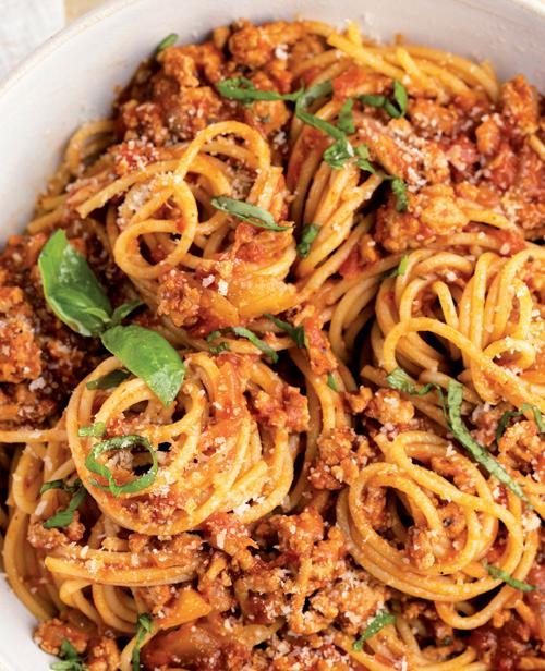 Add the garlic and onion and soften it with the meat for about a minute until fragrant. Add three cups of pasta sauce, low sodium broth, balsamic vinegar, italian seasoning and parsley to the pan. Mix everything well. Break the spaghetti in half and add to the pot in small handfuls. Try to spread out the pasta in the pan. Bring the pot up to a boil, then cover the pot and turn the heat down to medium heat to simmer. Cook the pasta covered for about 12-14 minutes or until tender. Stir the pasta occasionally while it cooks to help keep it from clumping. The pasta is done when it is tender. Shut off the heat and let the pasta stand for a 2-3 minutes to soak up a little more of the sauce. Serve with cheese or parsley and enjoy!